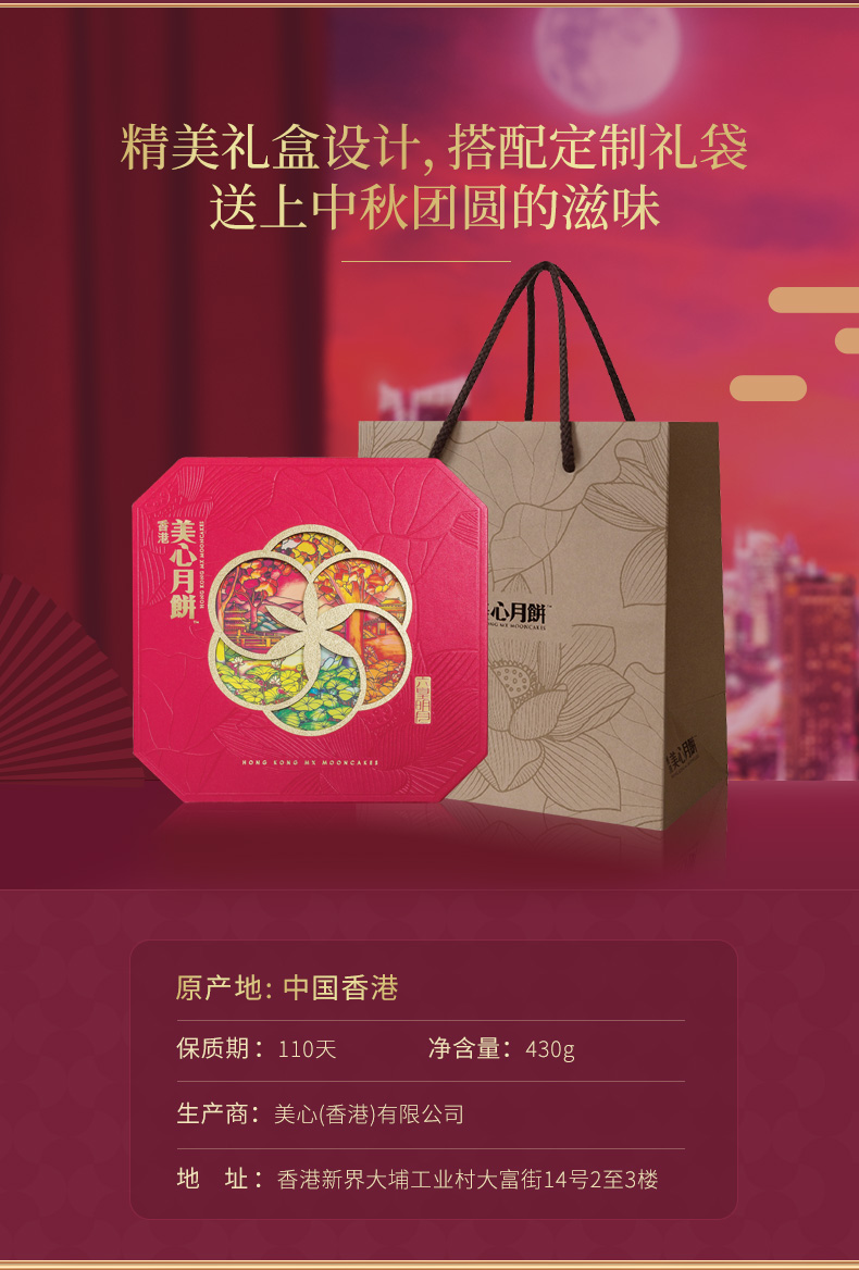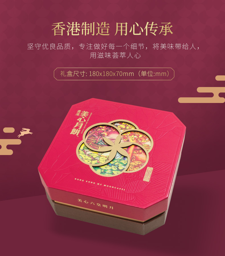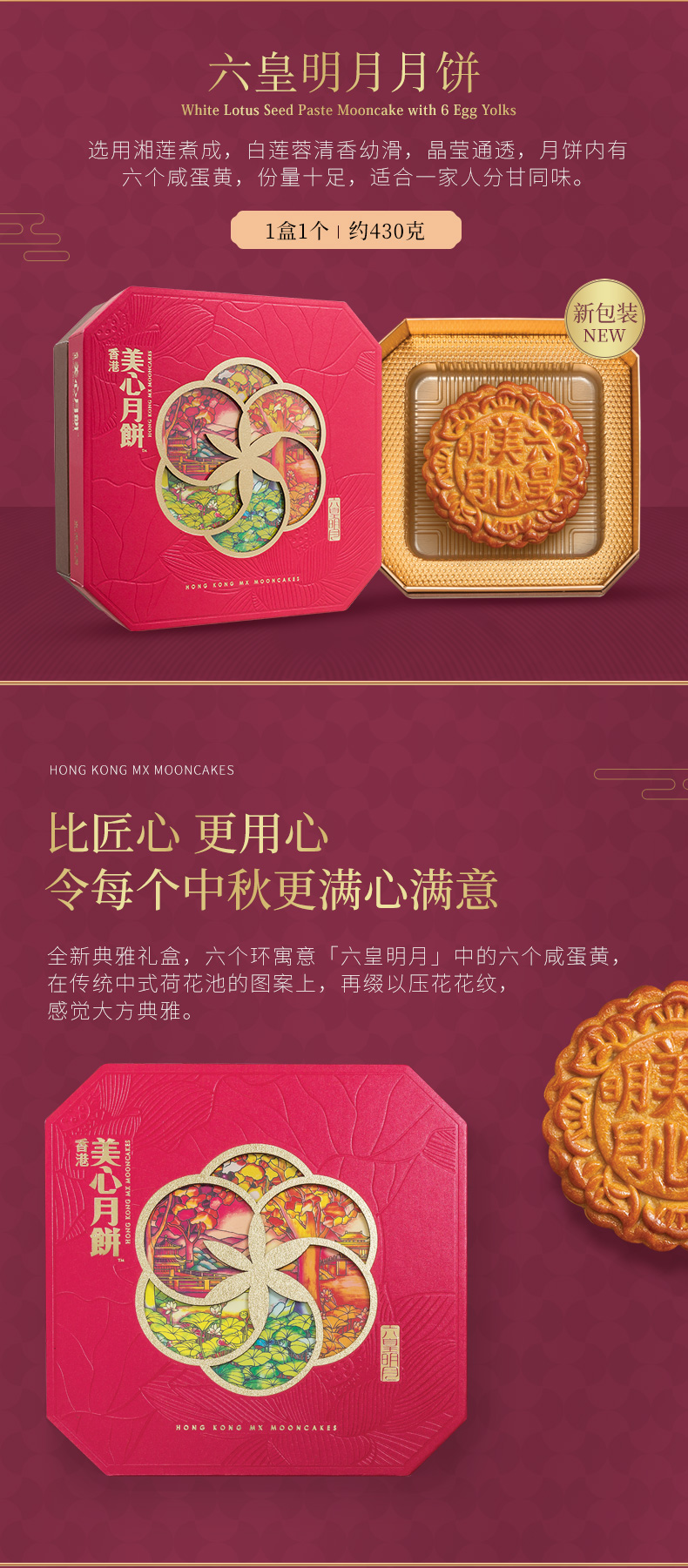 • 香港美心月饼 进口港式蛋黄莲蓉六皇明月月饼礼盒430g