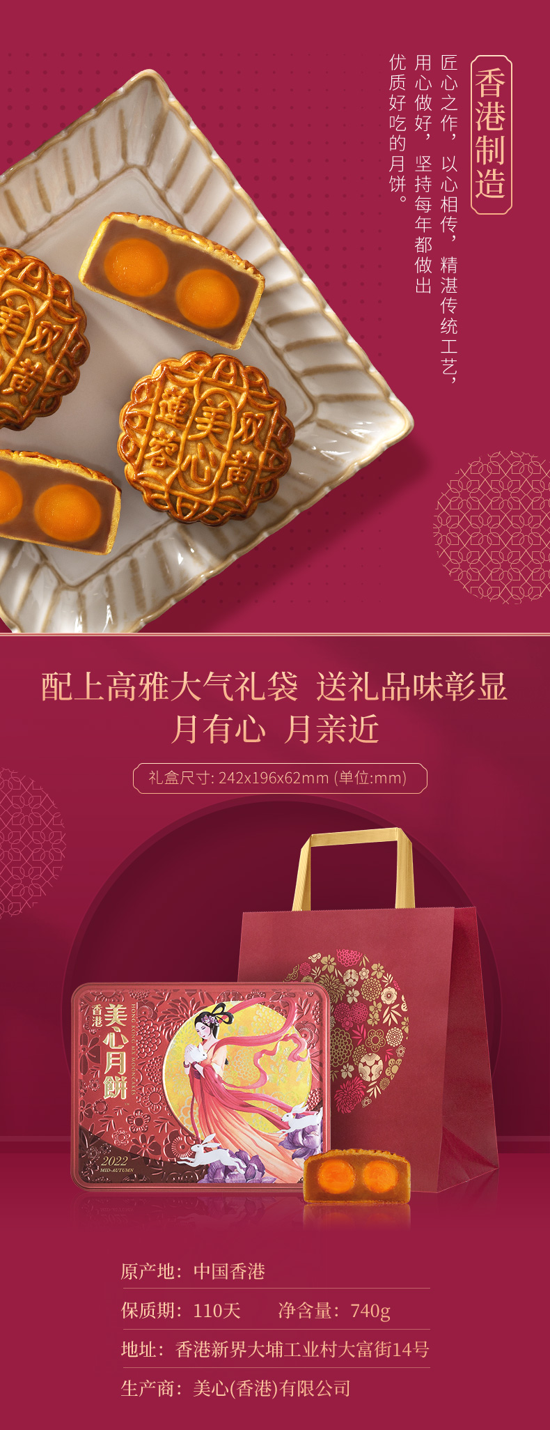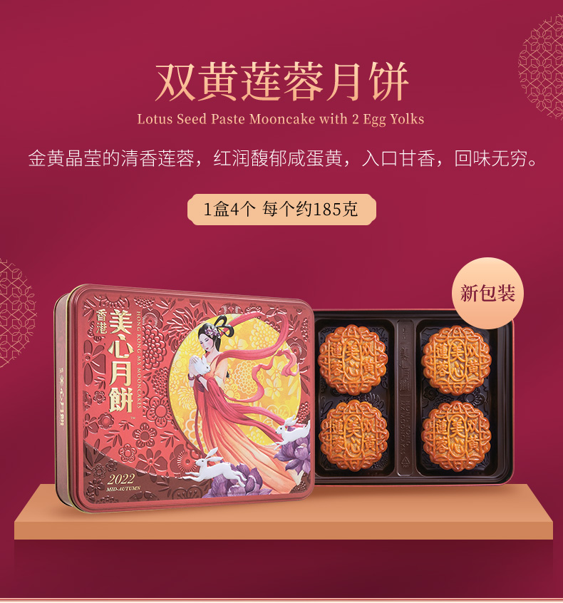 • 香港美心月饼 双黄莲蓉 港式月饼礼盒 740g 4枚装